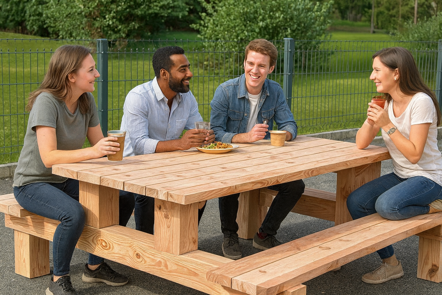 Idéale pour les repas en famille, les barbecues entre amis, les moments de détente en plein air mais aussi dans un jardin public, une aire de repos, une terrasse de restaurant, ou dans un parc.